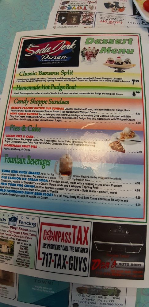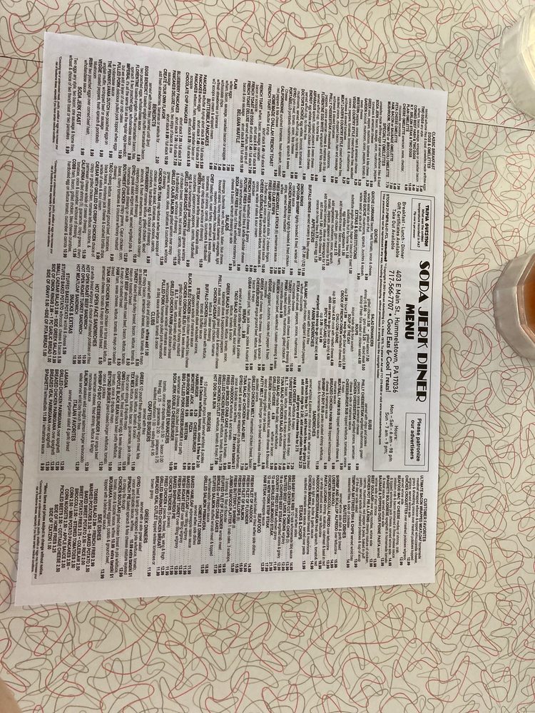 Introducing the menu at Soda Jerk Diner & Dairy Bar, a charming 50's style diner in Hummelstown, PA, specializing in American cuisine with a nostalgic twist. This family-friendly restaurant offers a wide range of options for breakfast, brunch, lunch, dinner, and dessert, including vegan and vegetarian choices. Customers praise the friendly service and generous portions at reasonable prices. Standout dishes include the Rubin sandwich, patty melt, and chocolate chip pancakes with fresh strawberries. The retro decor and welcoming atmosphere make dining here a delightful experience. With happy hour specials, outdoor seating, and dog-friendly options, Soda Jerk Diner & Dairy Bar caters to a diverse range of guests. Don't miss the opportunity to indulge in classic diner fare with a modern twist at this beloved establishment.